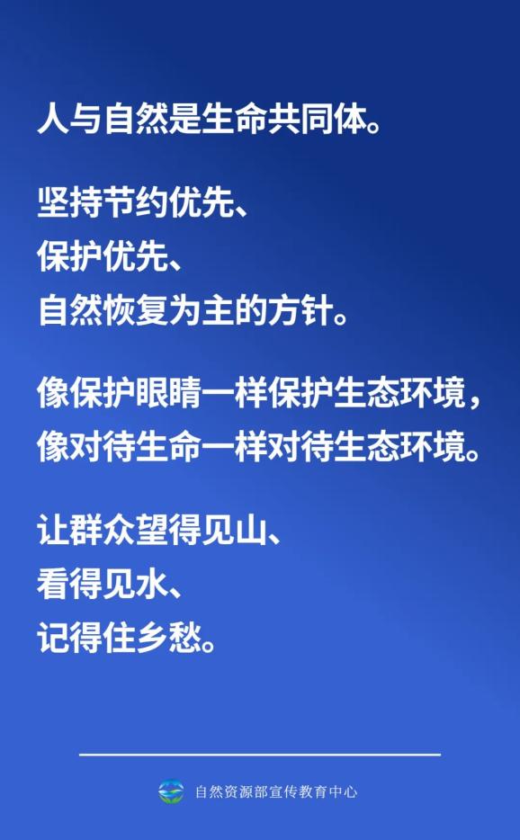 在整個發(fā)展過程中,我們都要堅持節(jié)約優(yōu)先、保護優(yōu)先、自然恢復(fù)為主的方針,不能只講索取不講投入,不能只講發(fā)展不講保護,不能只講利用不講修復(fù),要像保護眼睛一樣保護生態(tài)環(huán)境,像對待生命一樣對待生態(tài)環(huán)境,多謀打基礎(chǔ)、利長遠的善事,多干保護自然、修復(fù)生態(tài)的實事,多做治山理水、顯山露水的好事,讓群眾望得見山、看得見水、記得住鄉(xiāng)愁,讓自然生態(tài)美景永駐人間,還自然以寧靜、和諧、美麗。